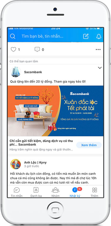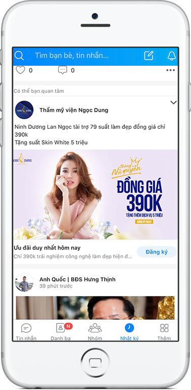 Hình ảnh quảng cáo website xuất hiện trên Zalo