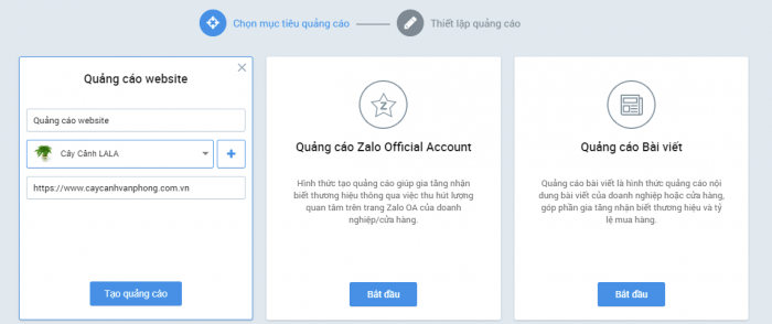 [Zalo] Hướng dẫn tạo quảng cáo website
