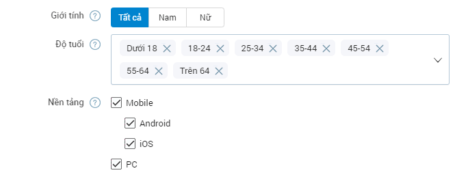 2. Giới tính: chọn theo nhóm đối tượng mục tiêu mà chiến dịch quảng cáo hướng đến.