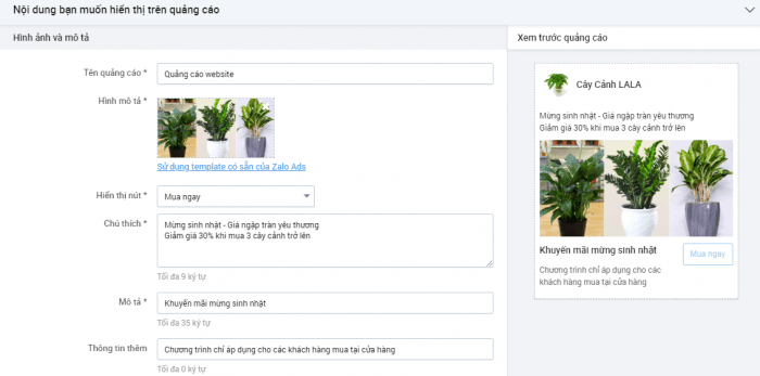 2. Hình mô tả: thể hiện hình ảnh sử dụng cho quảng cáo. Nhà quảng cáo đăng tải ảnh có kích thước 1028×533(px) và dung lượng không vượt quá 2MB.