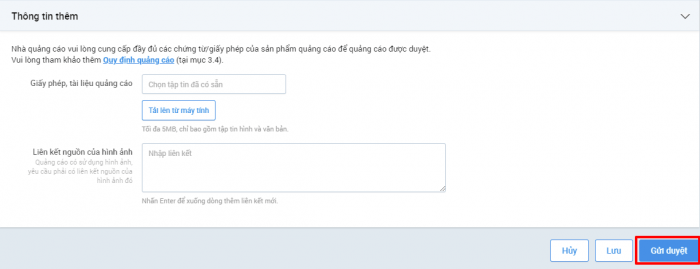 Bước 6: Thông tin thêm chiến dịch quảng cáo